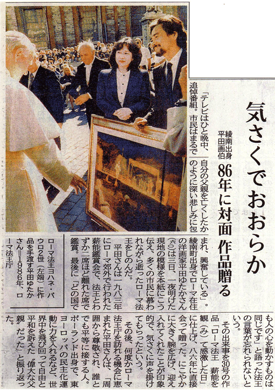 1982 高松三越にて個展 以後 3年ごとに11回開催 1986 ローマ法王に謁見 作品献上